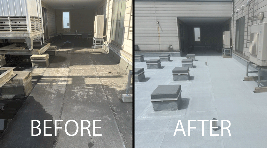 塗膜防水は、継ぎ目のないシームレスな防水層に仕上げることができます。複雑な形状の屋上やベランダでも容易に施工ができます。